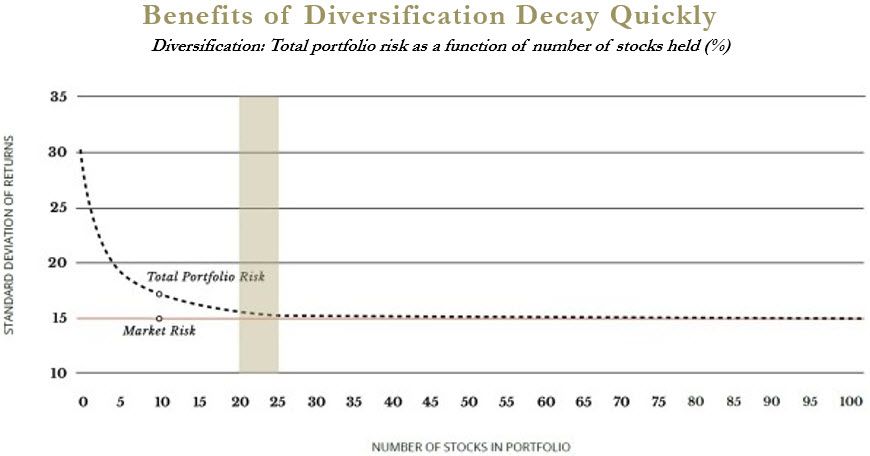 The academic evidence has long suggested that diversification delivers diminishing returns far sooner than most investors assume. It shows that the majority of diversification benefits are achieved with a relatively small number of assets.