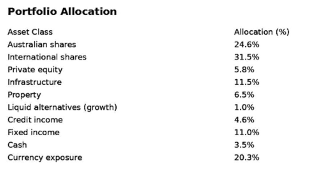 There’s no one-size-fits-all when it comes to investing, but if you are looking for a general model, this is the asset allocation used in the Aware Super Retirement Income Balanced Portfolio to give you an idea of how diversified such a portfolio can look.