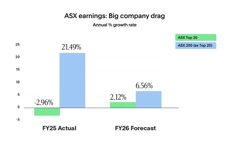 In fact, after generating significantly higher earnings growth than the ASX Top 20 in FY25, the ASX 200 (ex Top 20) is expected to once again generate superior earnings growth in FY26.