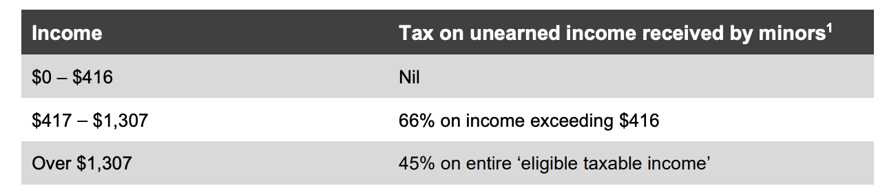 In Australia, minors face punitive tax rates on passive income like dividends, interest, and capital gains. The rules are purposely tough to prevent parents from shifting their own investments into their kids’ names to dodge taxes.