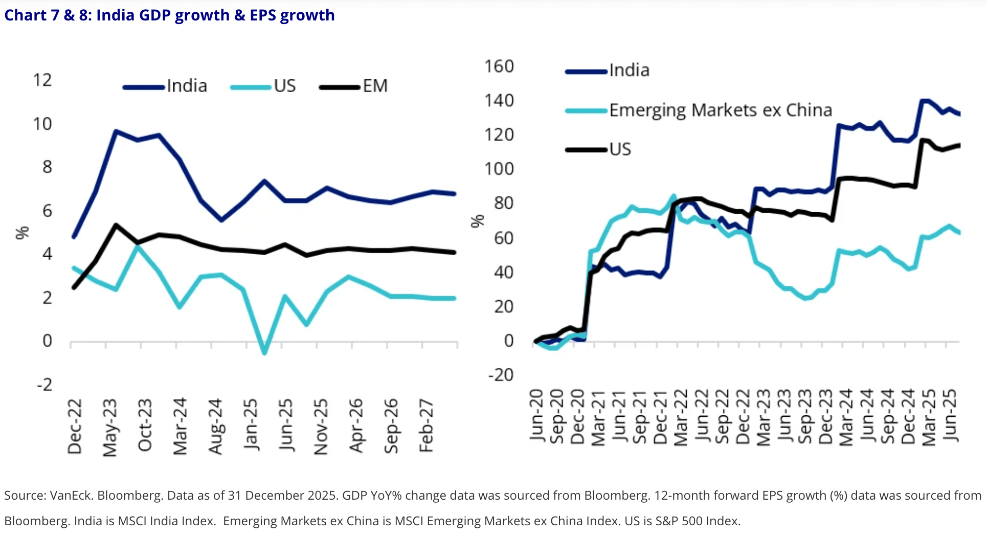 India presents a more nuanced case, where long-term structural appeal is tempered by valuation concerns and sensitivity to external shocks, including energy prices.