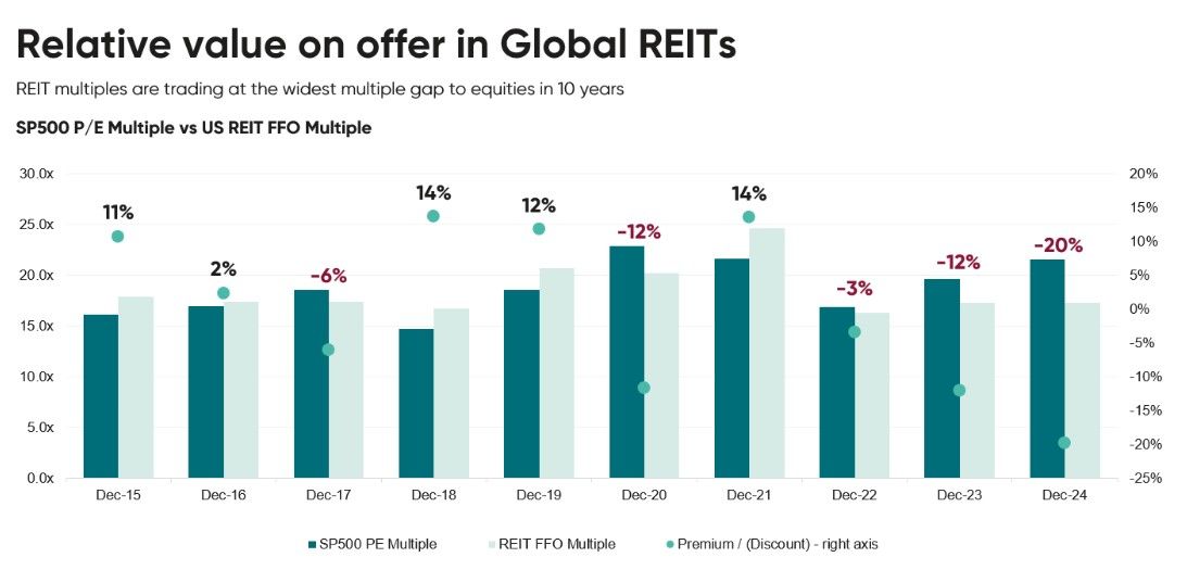 On most measures, GREITs are trading at their widest discount to equities in a decade, and sometimes even longer.