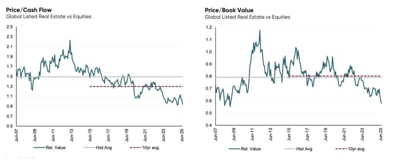 In the first half of 2025, global listed real estate transaction volumes hit US$358 billion, up from US$295 billion in the previous corresponding period. Public markets may be pessimistic but those with capital—largely pension funds and private equity—are stepping in to close the gap, buying entire companies at a discount. This is another value-affirming signal.