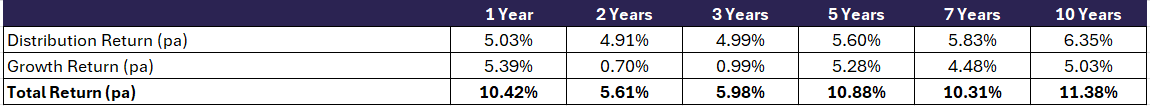 1 Performance data for the periods longer than one year have been annualised. Capital growth and income distributions are not guaranteed and are subject to the assumptions and risks contained in the PDS. Past performance is not a reliable indicator of future performance.
