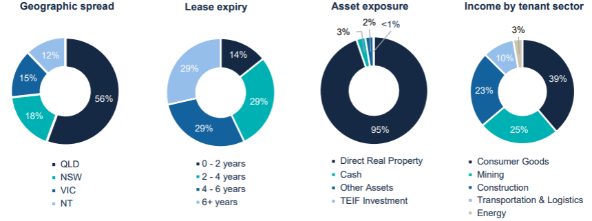 To build a portfolio of properties located in key Australian regional and metropolitan industrial precincts, by seeking to target industrial properties that have the potential to provide long-term cashflows to investors or could offer the opportunity of value-add. The primary objective is to maximise investor returns diversified by both geographical location and the industries in which the tenants operate. The Trust is also open to more active construction and development of either new or existing assets within the Trust.