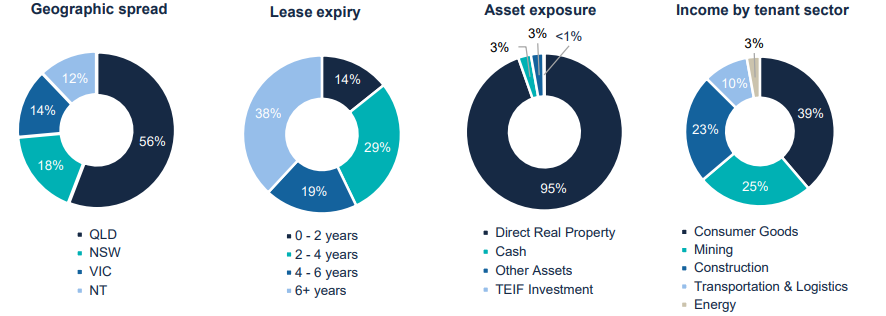 To build a portfolio of properties located in key Australian regional and metropolitan industrial precincts, by seeking to target industrial properties that have the potential to provide long-term cashflows to investors or could offer the opportunity of value-add. The primary objective is to maximise investor returns diversified by both geographical location and the industries in which the tenants operate. The Trust is also open to more active construction and development of either new or existing assets within the Trust.